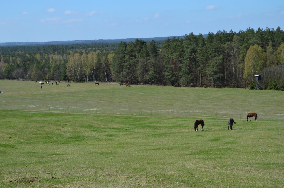 30 ha pastwisk podzielone jest na sektory, które są systematycznie zmieniane aby utrzymać odpowiedni odrost traw. Na łąkach dostępne są "słupki" solne dla koni. Konie są codziennie doglądane i w zależności od potrzeby dokarmiane owsem lub paszą.